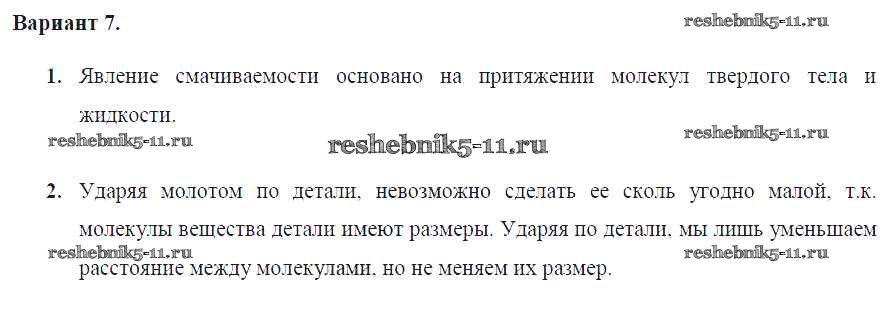 Готовая домашняя работа с ответами по Физике за 7 класс Марон Дидактические материалы Вертикаль Дрофа 2019 ФГОС - СР №-1. Строение вещества Вариант №7