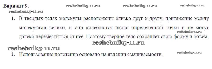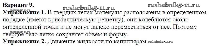 Готовая домашняя работа с ответами по Физике за 7 класс Марон Дидактические материалы Вертикаль Дрофа 2019 ФГОС - СР №-1. Строение вещества Вариант №9