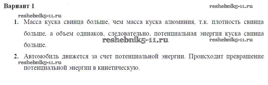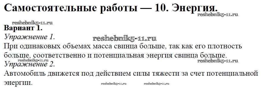 Готовая домашняя работа с ответами по Физике за 7 класс Марон Дидактические материалы Вертикаль Дрофа 2019 ФГОС - СР №-10. Энергия Вариант №1