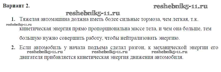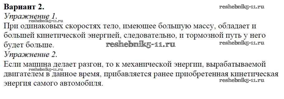 Готовая домашняя работа с ответами по Физике за 7 класс Марон Дидактические материалы Вертикаль Дрофа 2019 ФГОС - СР №-10. Энергия Вариант №2