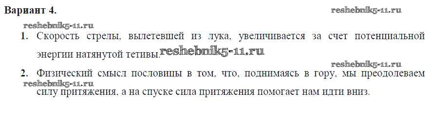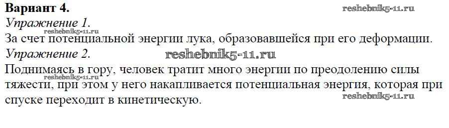Готовая домашняя работа с ответами по Физике за 7 класс Марон Дидактические материалы Вертикаль Дрофа 2019 ФГОС - СР №-10. Энергия Вариант №4