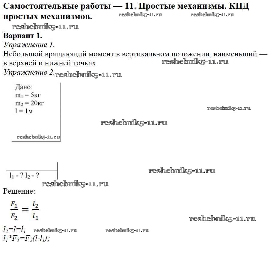 Готовая домашняя работа с ответами по Физике за 7 класс Марон Дидактические материалы Вертикаль Дрофа 2019 ФГОС - СР №-11. Простые механизмы. КПД простых механизмов Вариант №1