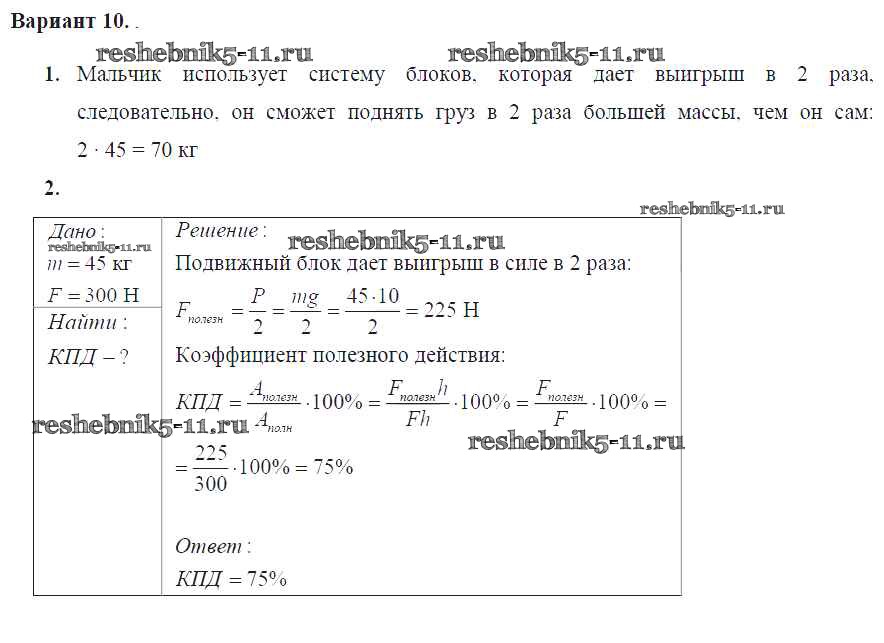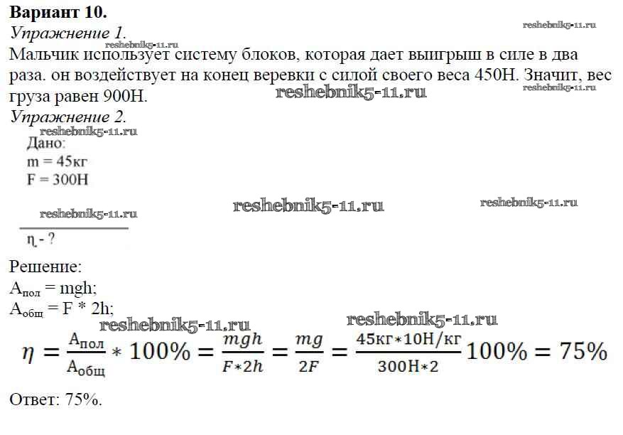 Готовая домашняя работа с ответами по Физике за 7 класс Марон Дидактические материалы Вертикаль Дрофа 2019 ФГОС - СР №-11. Простые механизмы. КПД простых механизмов Вариант №10