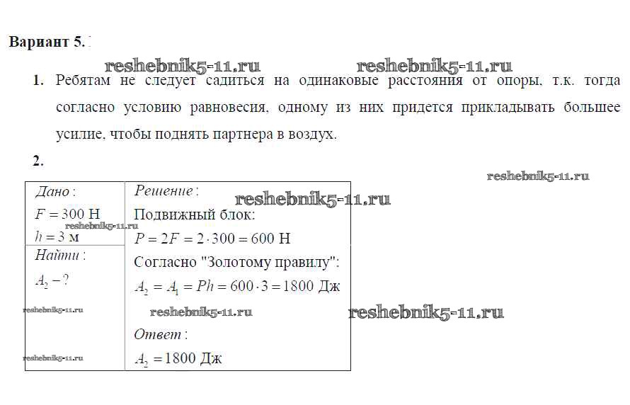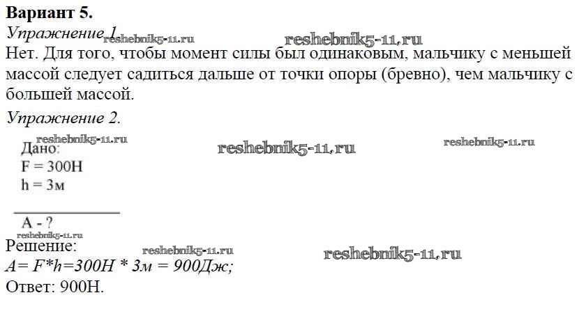 Готовая домашняя работа с ответами по Физике за 7 класс Марон Дидактические материалы Вертикаль Дрофа 2019 ФГОС - СР №-11. Простые механизмы. КПД простых механизмов Вариант №5