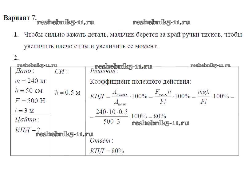Готовая домашняя работа с ответами по Физике за 7 класс Марон Дидактические материалы Вертикаль Дрофа 2019 ФГОС - СР №-11. Простые механизмы. КПД простых механизмов Вариант №7