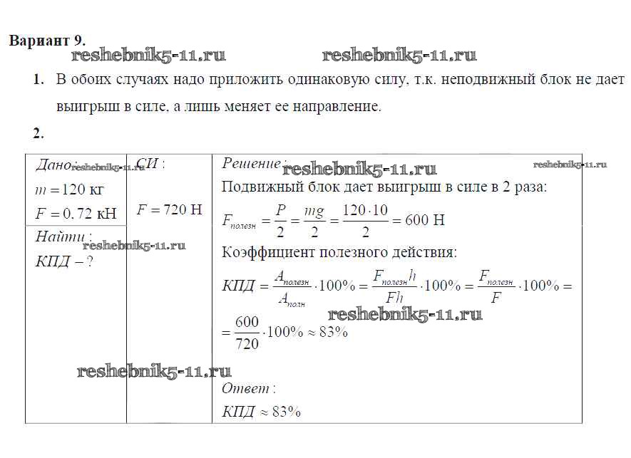 Готовая домашняя работа с ответами по Физике за 7 класс Марон Дидактические материалы Вертикаль Дрофа 2019 ФГОС - СР №-11. Простые механизмы. КПД простых механизмов Вариант №9