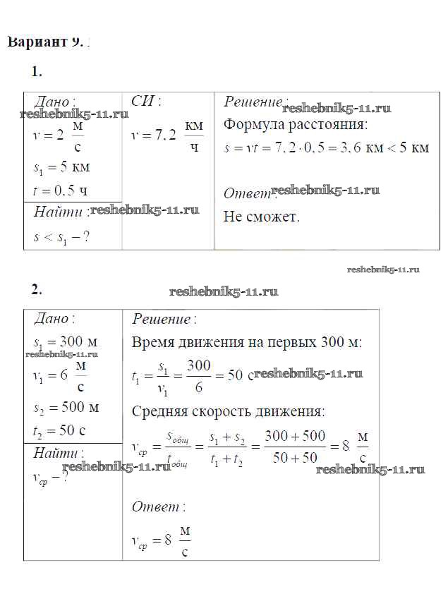 Готовая домашняя работа с ответами по Физике за 7 класс Марон Дидактические материалы Вертикаль Дрофа 2019 ФГОС - СР №-2. Механическое движение Вариант №9