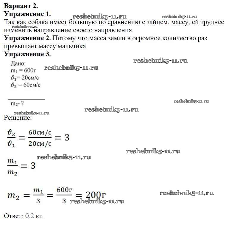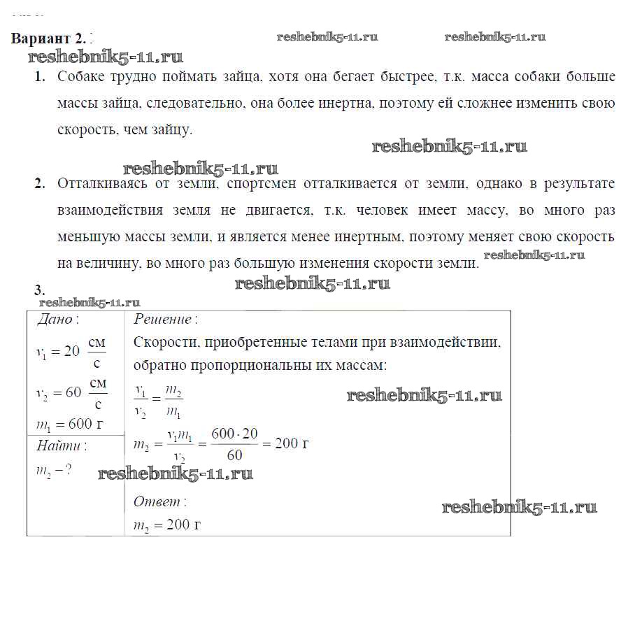 Готовая домашняя работа с ответами по Физике за 7 класс Марон Дидактические материалы Вертикаль Дрофа 2019 ФГОС - СР №-3. Инерция. Взаимодействие тел. Масса тела Вариант №2