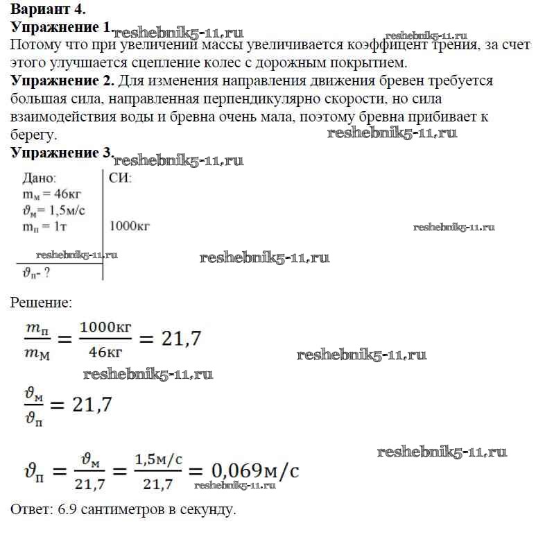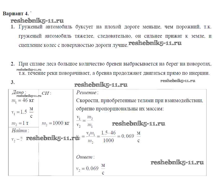 Готовая домашняя работа с ответами по Физике за 7 класс Марон Дидактические материалы Вертикаль Дрофа 2019 ФГОС - СР №-3. Инерция. Взаимодействие тел. Масса тела Вариант №4
