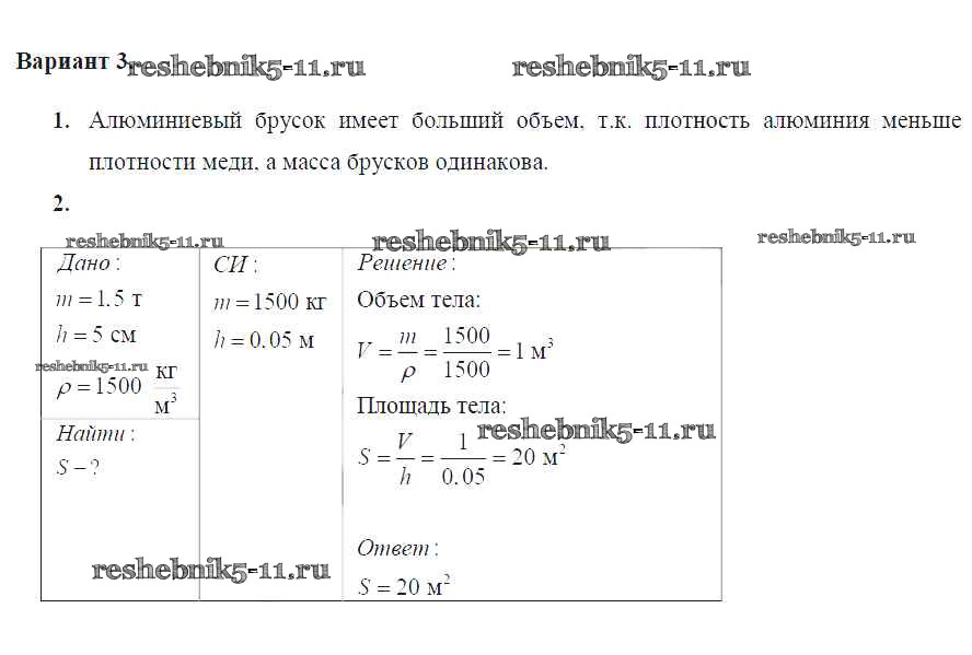 Готовая домашняя работа с ответами по Физике за 7 класс Марон Дидактические материалы Вертикаль Дрофа 2019 ФГОС - СР №-4. Плотность вещества Вариант №3