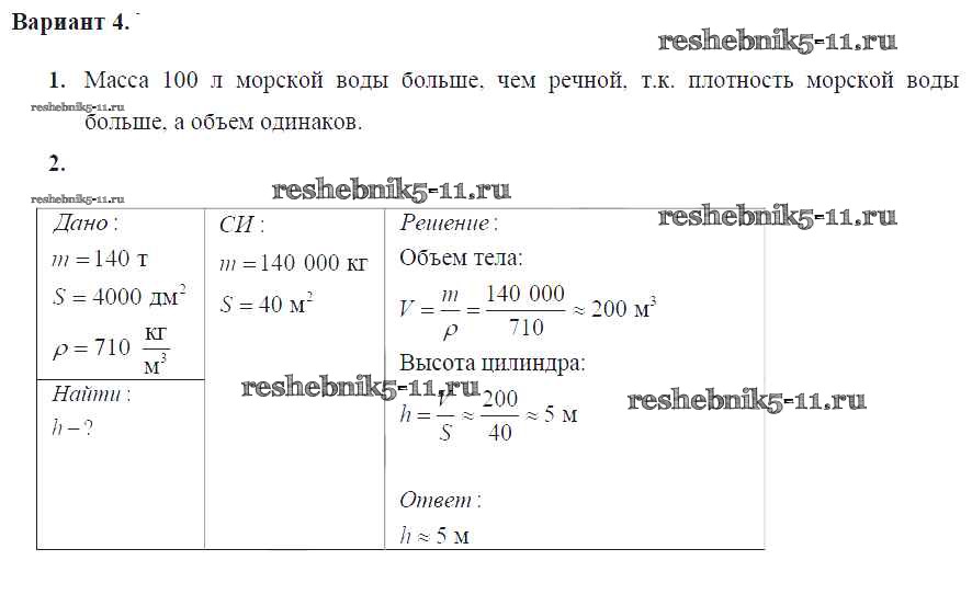 Готовая домашняя работа с ответами по Физике за 7 класс Марон Дидактические материалы Вертикаль Дрофа 2019 ФГОС - СР №-4. Плотность вещества Вариант №4