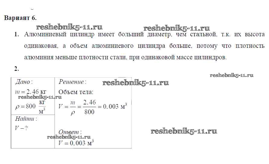 Готовая домашняя работа с ответами по Физике за 7 класс Марон Дидактические материалы Вертикаль Дрофа 2019 ФГОС - СР №-4. Плотность вещества Вариант №6