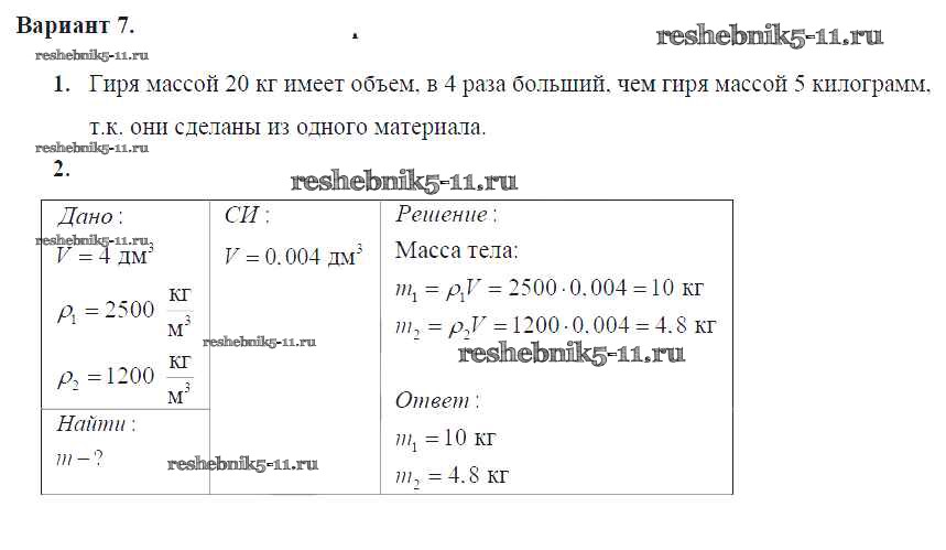 Готовая домашняя работа с ответами по Физике за 7 класс Марон Дидактические материалы Вертикаль Дрофа 2019 ФГОС - СР №-4. Плотность вещества Вариант №7