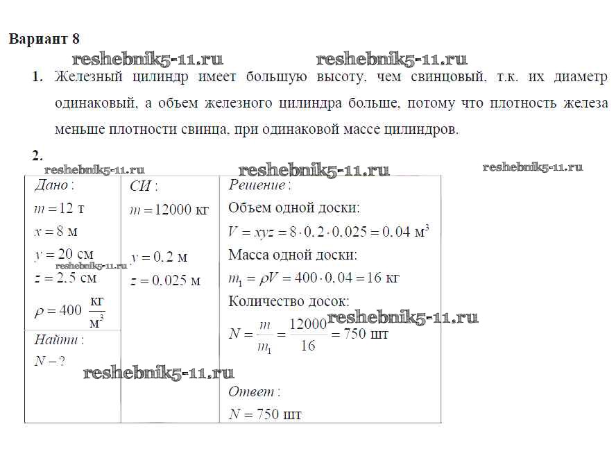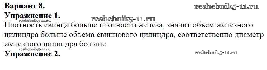 Готовая домашняя работа с ответами по Физике за 7 класс Марон Дидактические материалы Вертикаль Дрофа 2019 ФГОС - СР №-4. Плотность вещества Вариант №8
