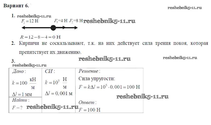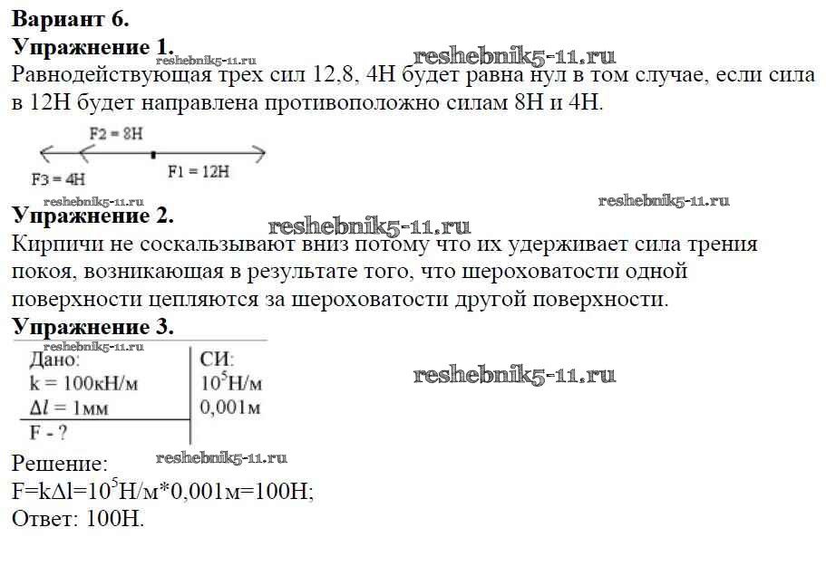 Готовая домашняя работа с ответами по Физике за 7 класс Марон Дидактические материалы Вертикаль Дрофа 2019 ФГОС - СР №-5. Силы в природе Вариант №6