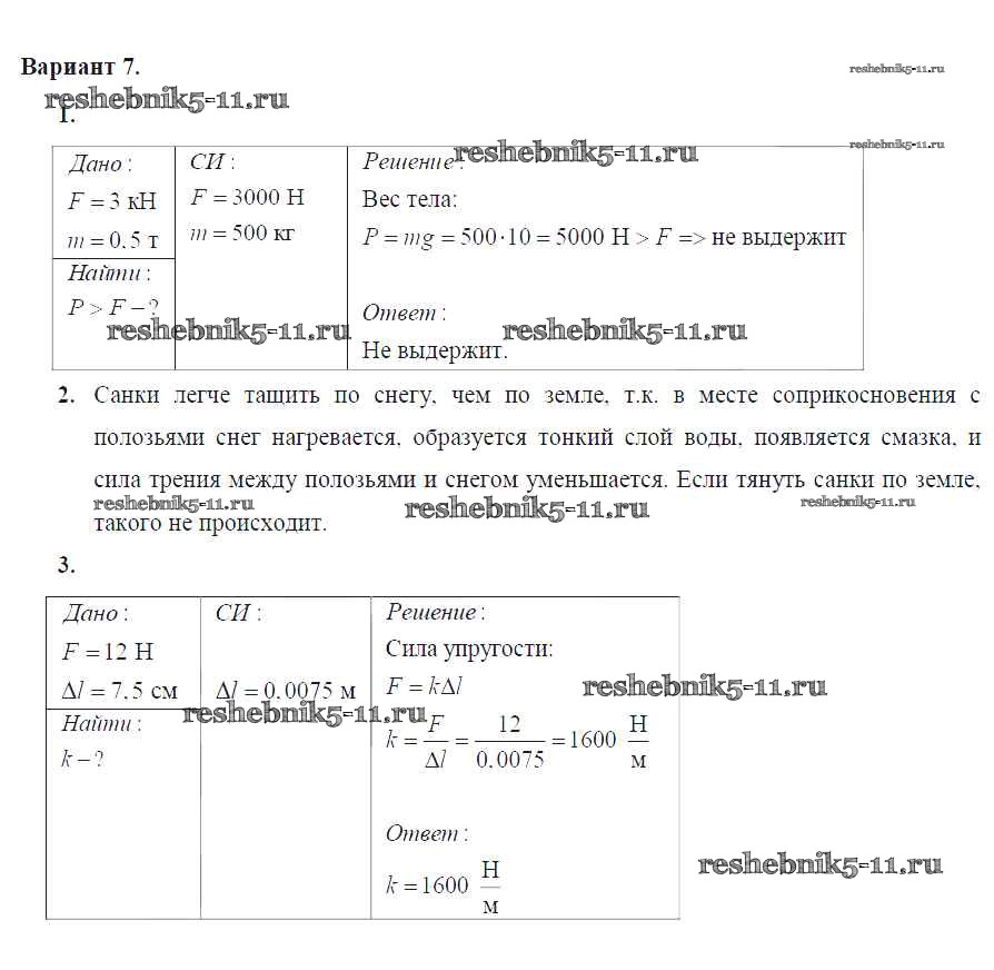 Готовая домашняя работа с ответами по Физике за 7 класс Марон Дидактические материалы Вертикаль Дрофа 2019 ФГОС - СР №-5. Силы в природе Вариант №7