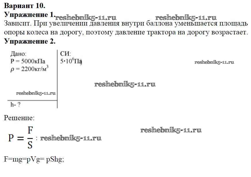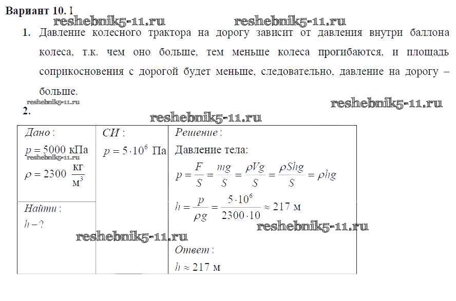 Готовая домашняя работа с ответами по Физике за 7 класс Марон Дидактические материалы Вертикаль Дрофа 2019 ФГОС - СР №-6. Давление твердых тел Вариант №10