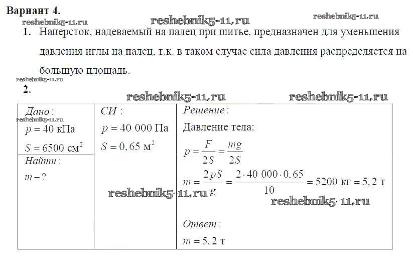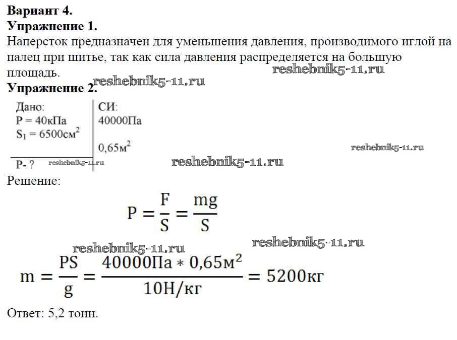 Готовая домашняя работа с ответами по Физике за 7 класс Марон Дидактические материалы Вертикаль Дрофа 2019 ФГОС - СР №-6. Давление твердых тел Вариант №4
