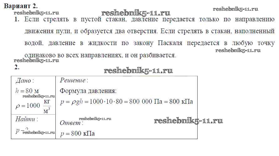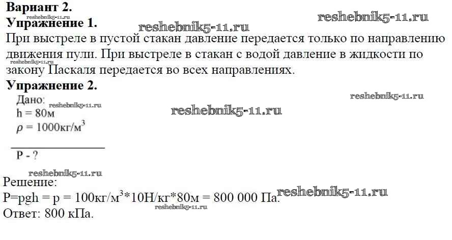Готовая домашняя работа с ответами по Физике за 7 класс Марон Дидактические материалы Вертикаль Дрофа 2019 ФГОС - СР №-7. Давление в жидкостях и газах Вариант №2