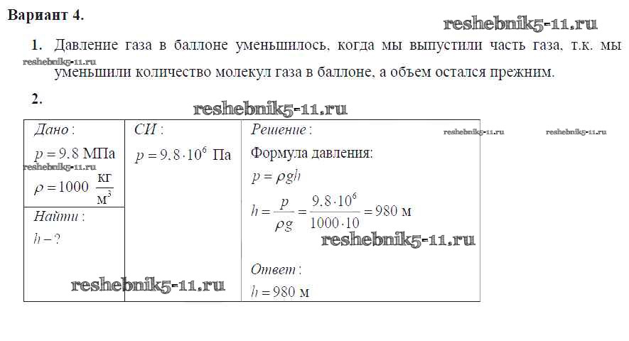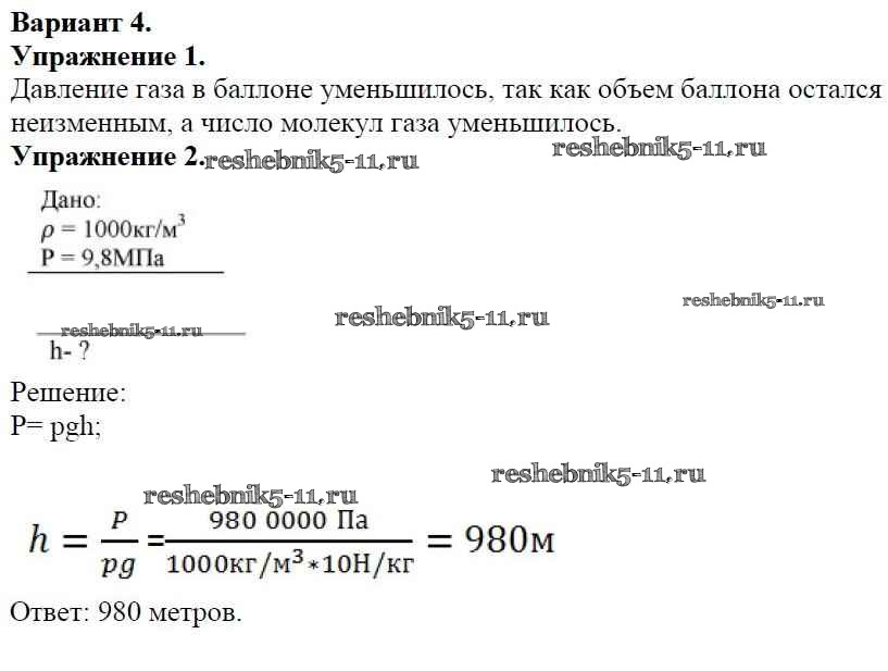 Готовая домашняя работа с ответами по Физике за 7 класс Марон Дидактические материалы Вертикаль Дрофа 2019 ФГОС - СР №-7. Давление в жидкостях и газах Вариант №4