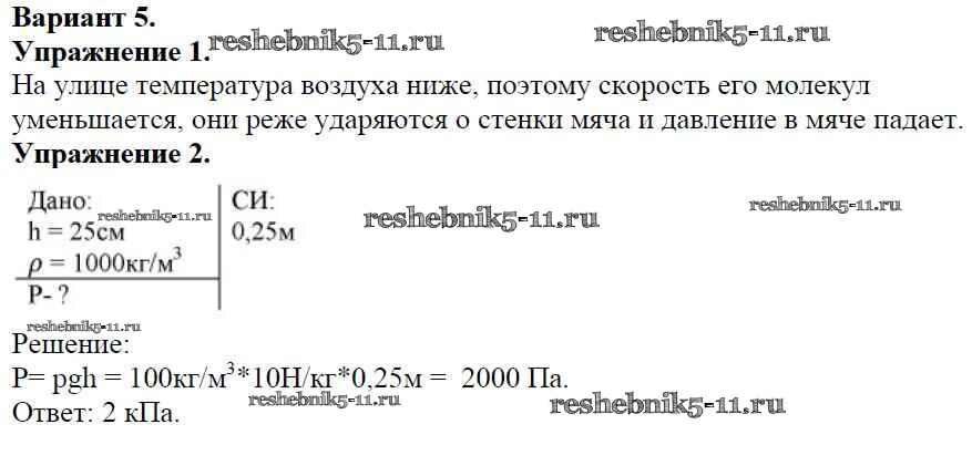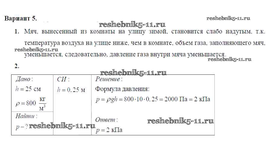 Готовая домашняя работа с ответами по Физике за 7 класс Марон Дидактические материалы Вертикаль Дрофа 2019 ФГОС - СР №-7. Давление в жидкостях и газах Вариант №5