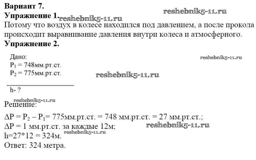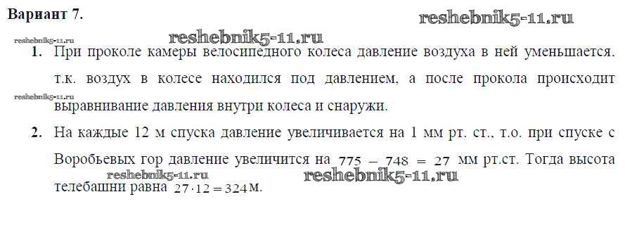 Готовая домашняя работа с ответами по Физике за 7 класс Марон Дидактические материалы Вертикаль Дрофа 2019 ФГОС - СР №-7. Давление в жидкостях и газах Вариант №7