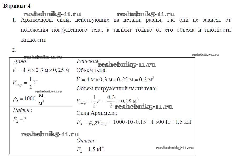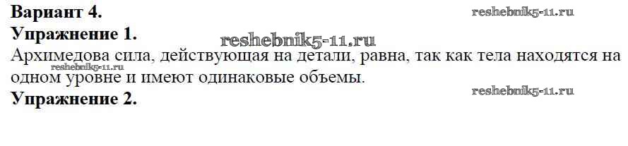 Готовая домашняя работа с ответами по Физике за 7 класс Марон Дидактические материалы Вертикаль Дрофа 2019 ФГОС - СР №-8. Архимедова сила. Плавание тел Вариант №4