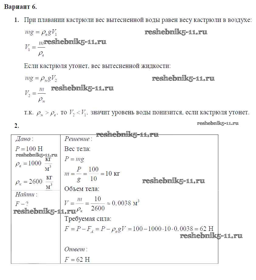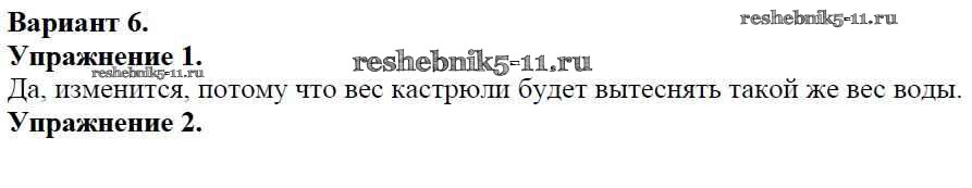 Готовая домашняя работа с ответами по Физике за 7 класс Марон Дидактические материалы Вертикаль Дрофа 2019 ФГОС - СР №-8. Архимедова сила. Плавание тел Вариант №6