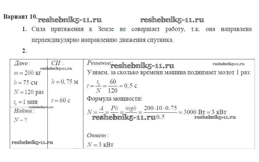 Готовая домашняя работа с ответами по Физике за 7 класс Марон Дидактические материалы Вертикаль Дрофа 2019 ФГОС - СР №-9. Механическая работа. Мощность Вариант №10