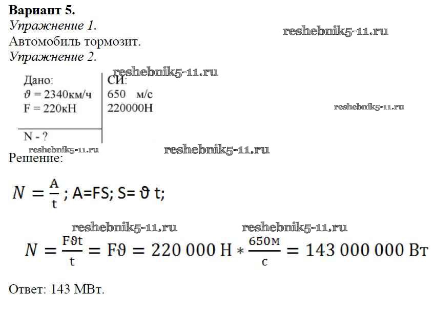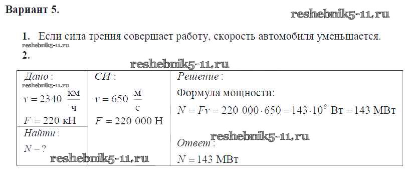 Готовая домашняя работа с ответами по Физике за 7 класс Марон Дидактические материалы Вертикаль Дрофа 2019 ФГОС - СР №-9. Механическая работа. Мощность Вариант №5