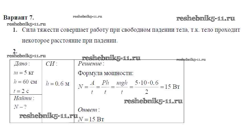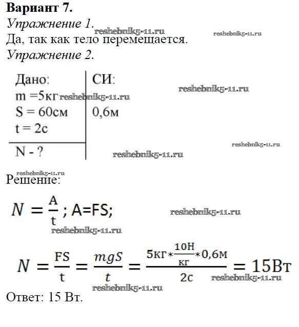 Готовая домашняя работа с ответами по Физике за 7 класс Марон Дидактические материалы Вертикаль Дрофа 2019 ФГОС - СР №-9. Механическая работа. Мощность Вариант №7
