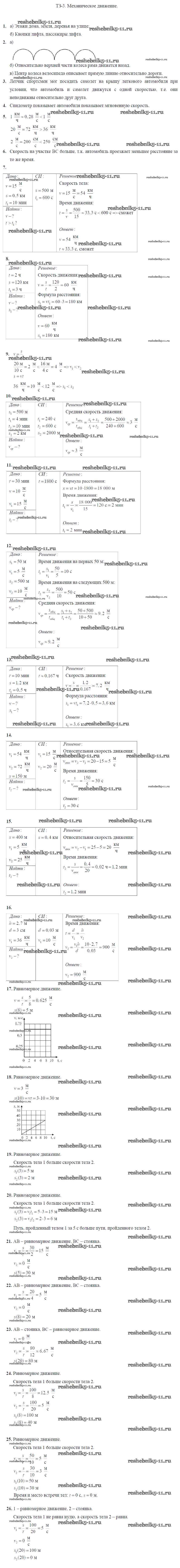 Готовая домашняя работа с ответами по Физике за 7 класс Марон Дидактические материалы Вертикаль Дрофа 2019 ФГОС - Тренировочные задания Задание №3. Механическое движение