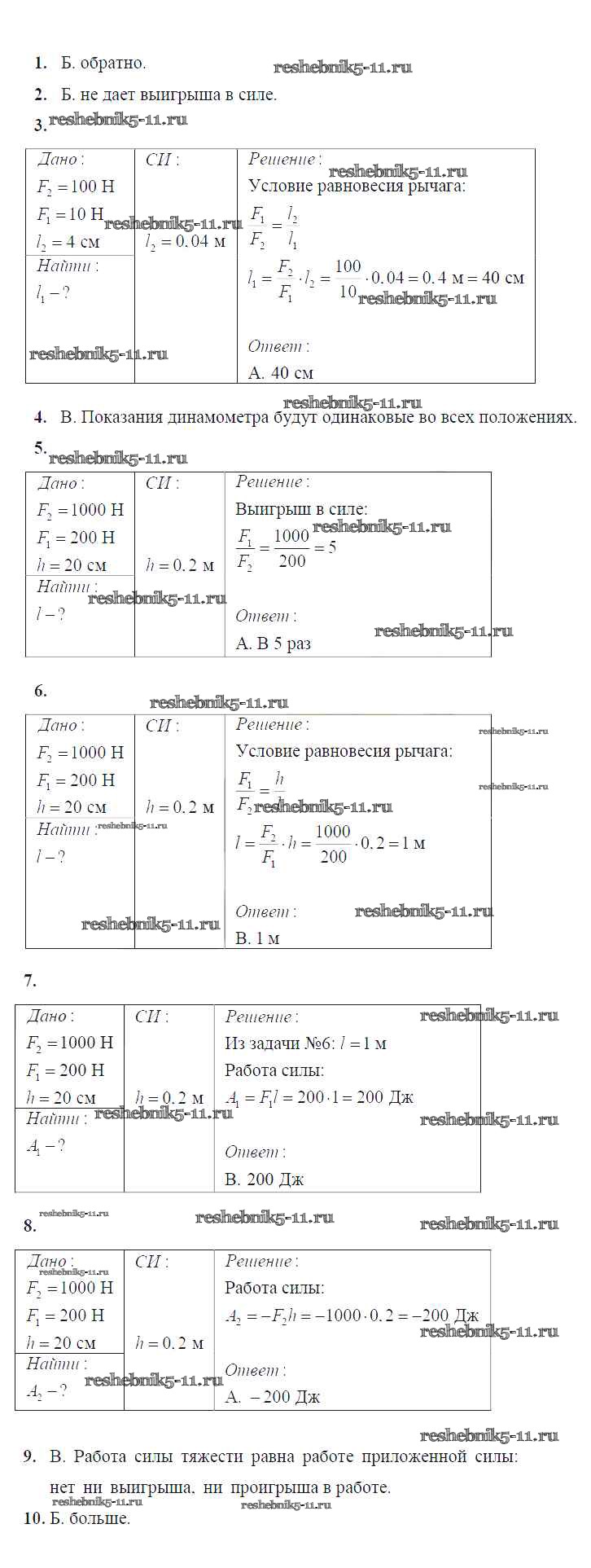 Готовая домашняя работа с ответами по Физике за 7 класс Марон Дидактические материалы Вертикаль Дрофа 2019 ФГОС - Тест №10. Простые механизмы. КПД простых механизмов Вариант №1