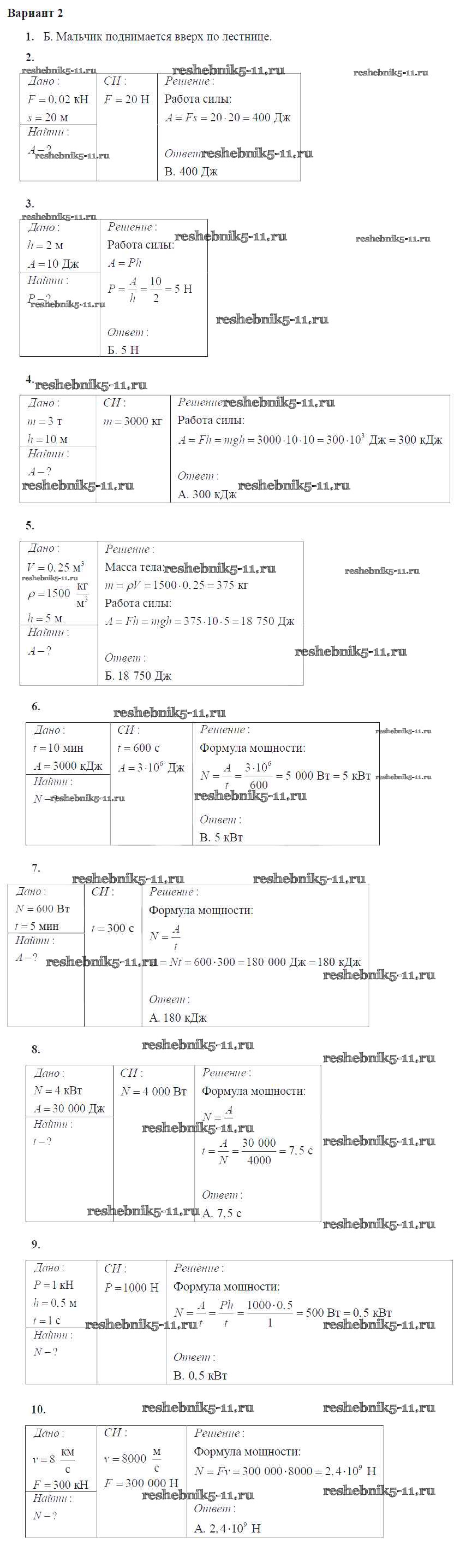 Готовая домашняя работа с ответами по Физике за 7 класс Марон Дидактические материалы Вертикаль Дрофа 2019 ФГОС - Тест №8. Механическая работа и мощность Вариант №2