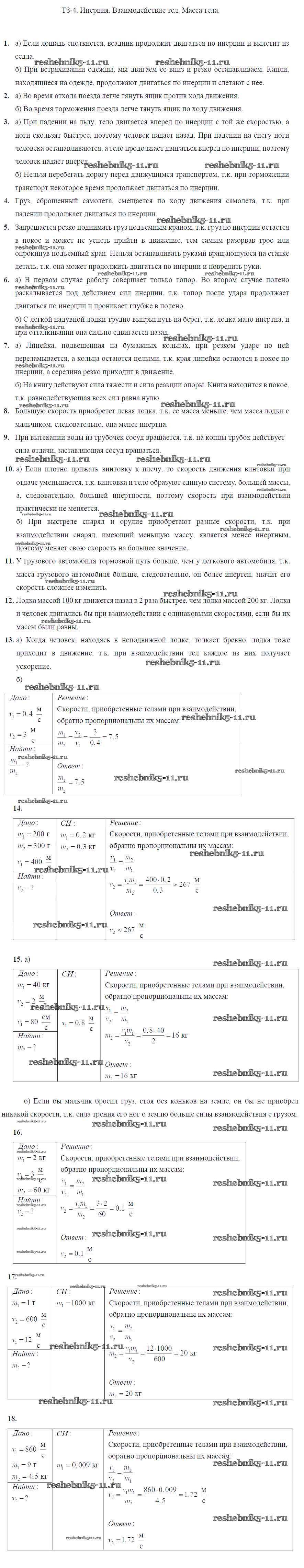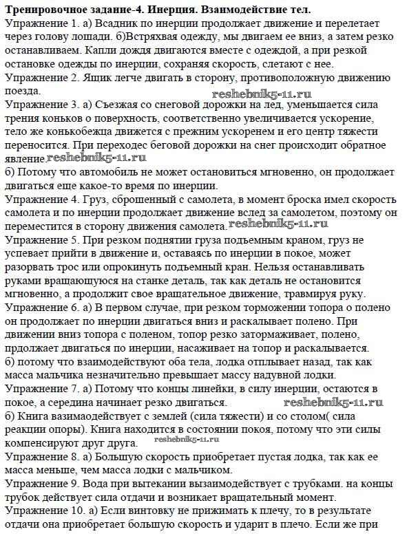 Готовая домашняя работа с ответами по Физике за 7 класс Марон Дидактические материалы Вертикаль Дрофа 2019 ФГОС - Тренировочные задания Задание №4. Инерция. Взаимодействие тел. Масса тела