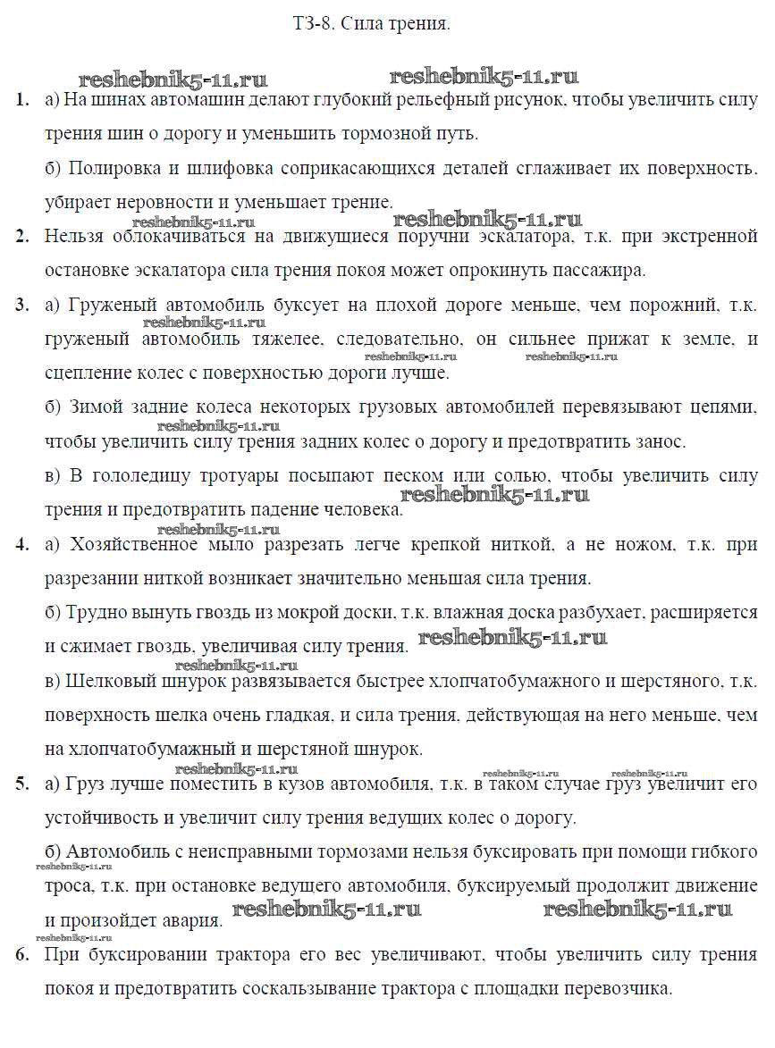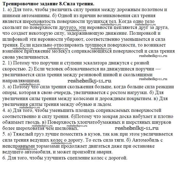 Готовая домашняя работа с ответами по Физике за 7 класс Марон Дидактические материалы Вертикаль Дрофа 2019 ФГОС - Тренировочные задания Задание №8. Сила трения