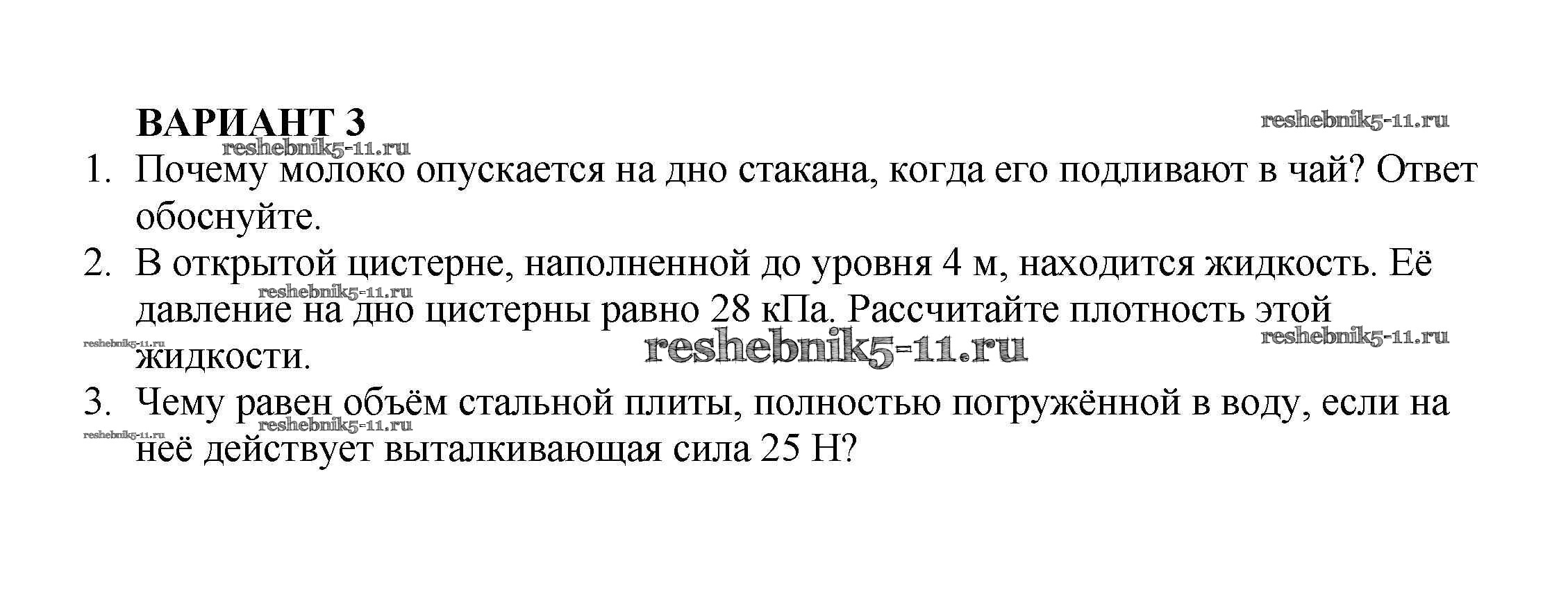 Решебник №2 / контрольная работа / кр №-3. давление твердых тел, жидкостей и газов / вариант №3