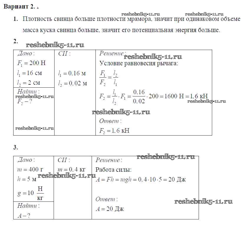 Решебник №2 / контрольная работа / кр №-4. работа и мощность. энергия / вариант №2