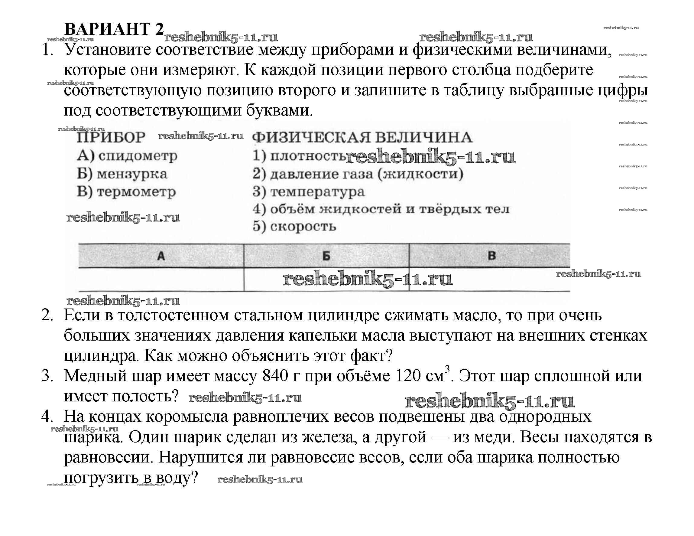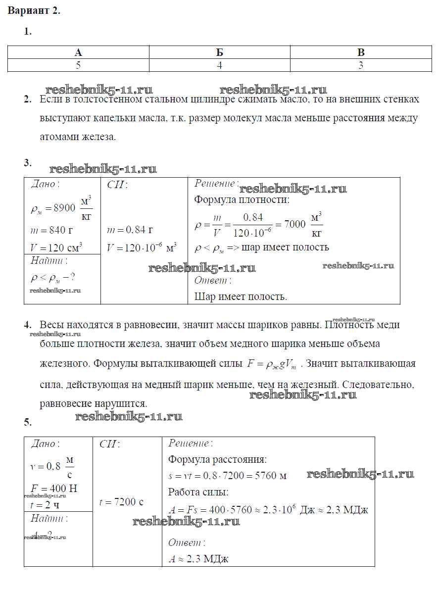 Готовая домашняя работа с ответами по Физике за 7 класс Марон Самостоятельные и контрольные работы Вертикаль Дрофа 2016 ФГОС - КР №-5. Итоговая Вариант №2