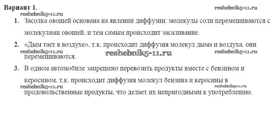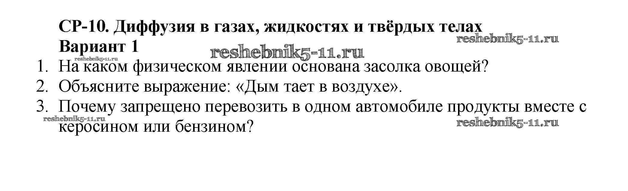 Решебник №2 / самостоятельная работа / ср-№10. диффузия в газах, жидкостях и твердых телах / вариант №1