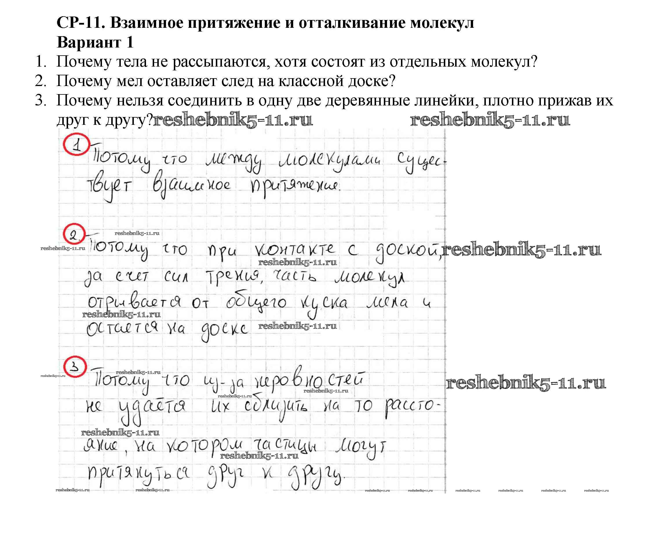 Решебник №2 / самостоятельная работа / ср-№11. взаимное притяжение и отталкивание молекул / вариант №1