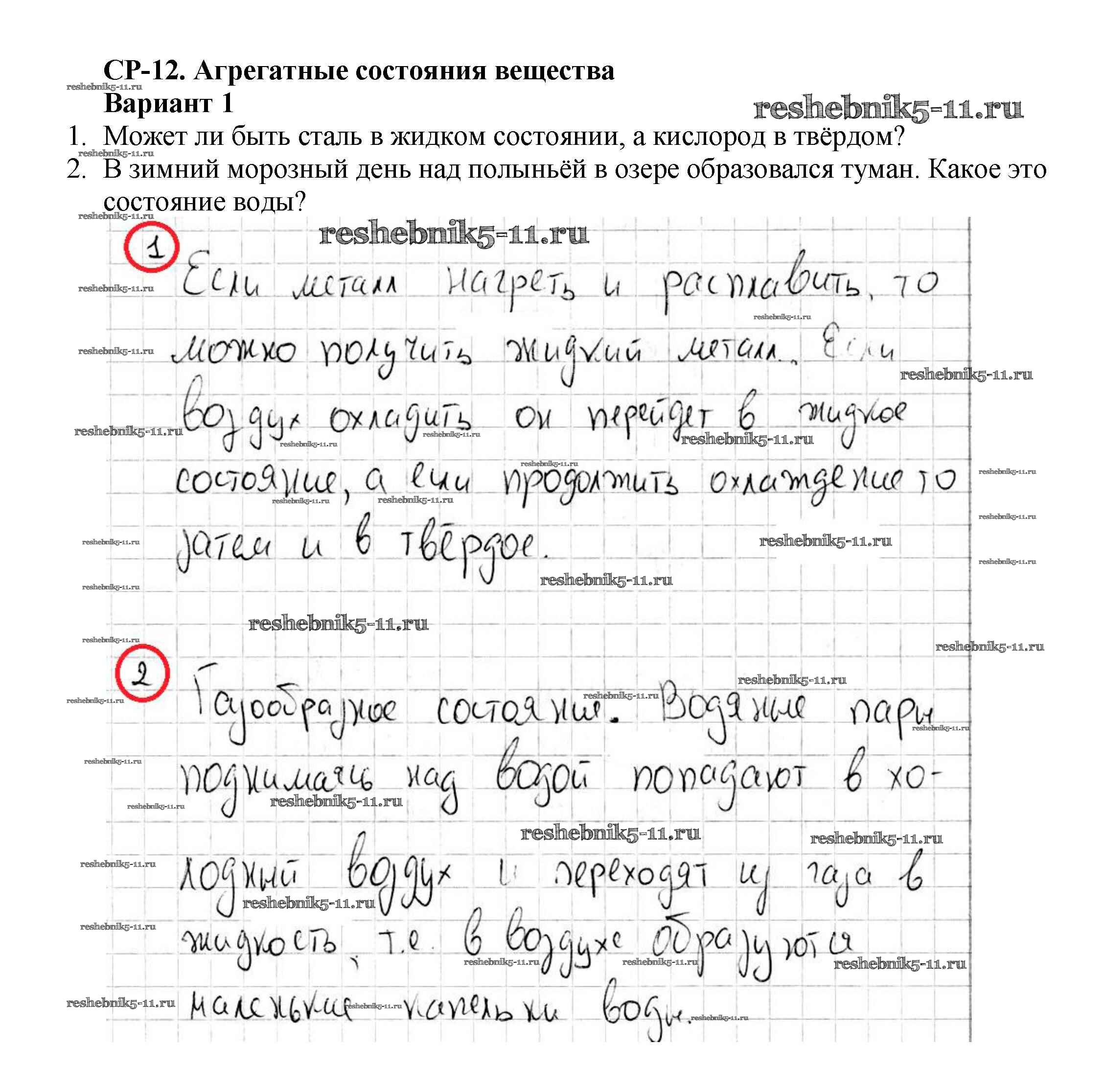 Решебник №1 / самостоятельная работа / ср-№12. агрегатные состояния вещества / вариант №1