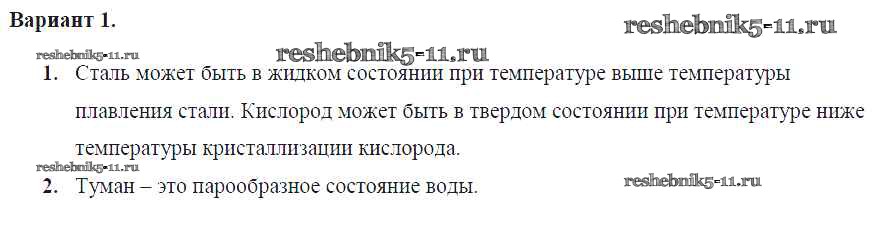 Готовая домашняя работа с ответами по Физике за 7 класс Марон Самостоятельные и контрольные работы Вертикаль Дрофа 2016 ФГОС - СР-№12. Агрегатные состояния вещества Вариант №1