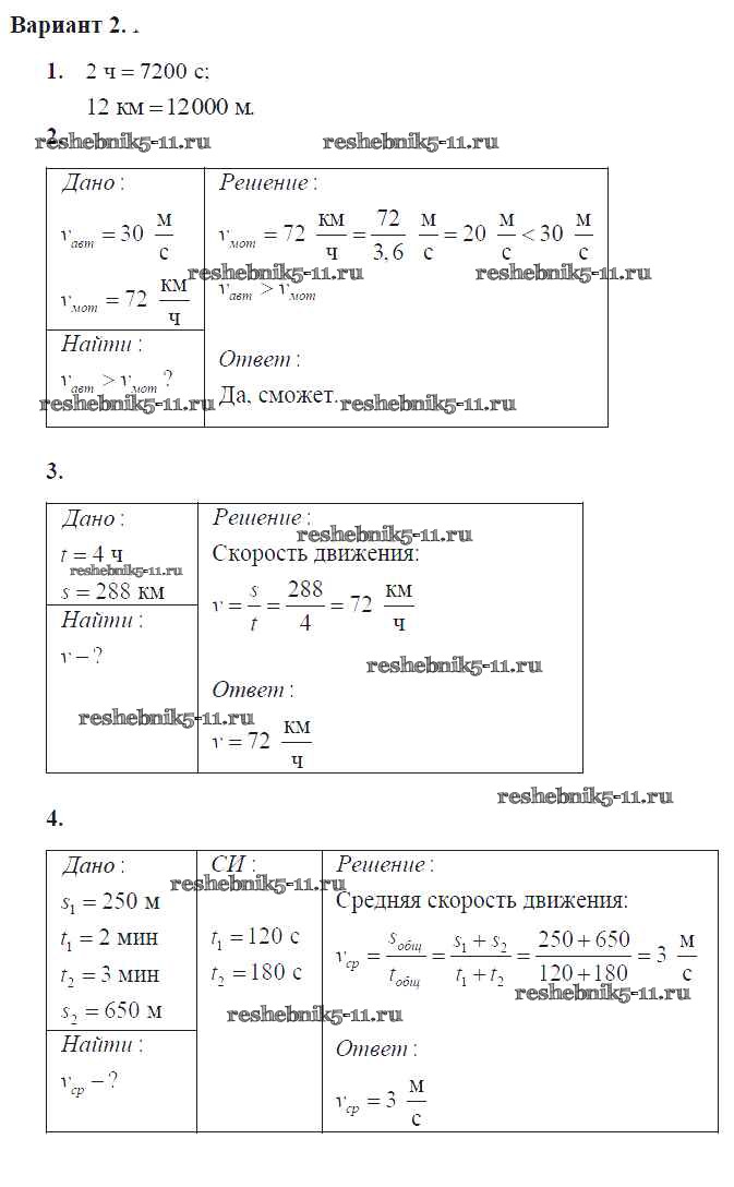 Готовая домашняя работа с ответами по Физике за 7 класс Марон Самостоятельные и контрольные работы Вертикаль Дрофа 2016 ФГОС - СР-№16. Скорость. Единицы скорости Вариант №2