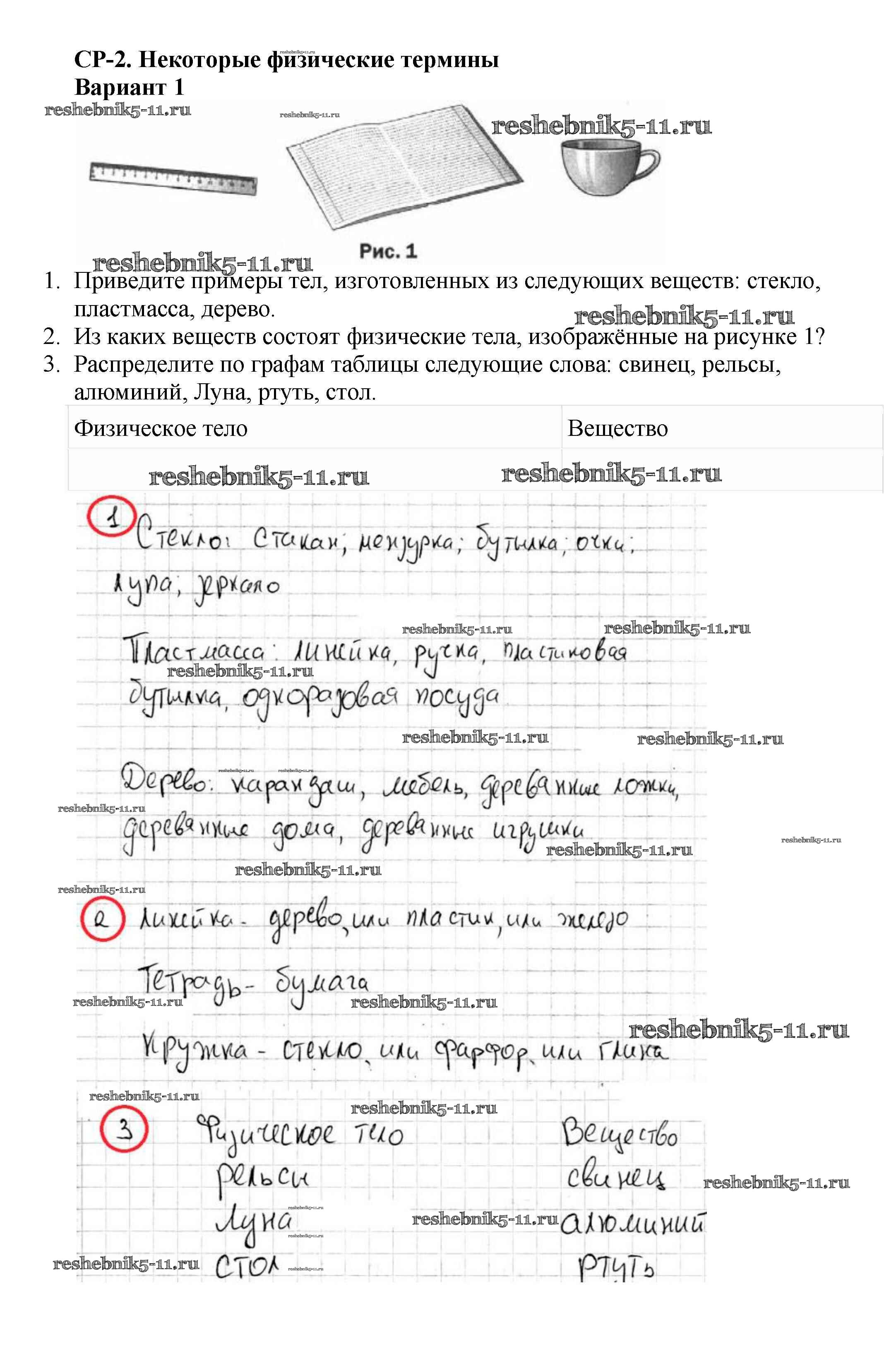 Готовая домашняя работа с ответами по Физике за 7 класс Марон Самостоятельные и контрольные работы Вертикаль Дрофа 2016 ФГОС - СР-№2. Некоторые физические термины Вариант №1