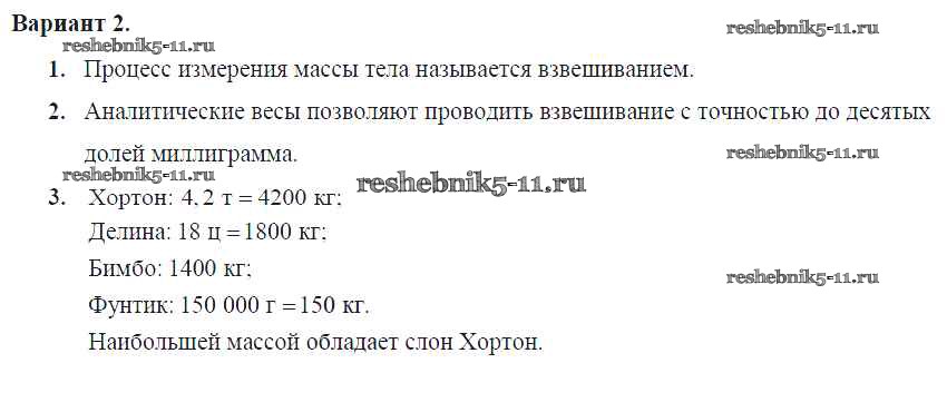 Решебник №2 / самостоятельная работа / ср-№21. измерение массы тела на весах / вариант №2