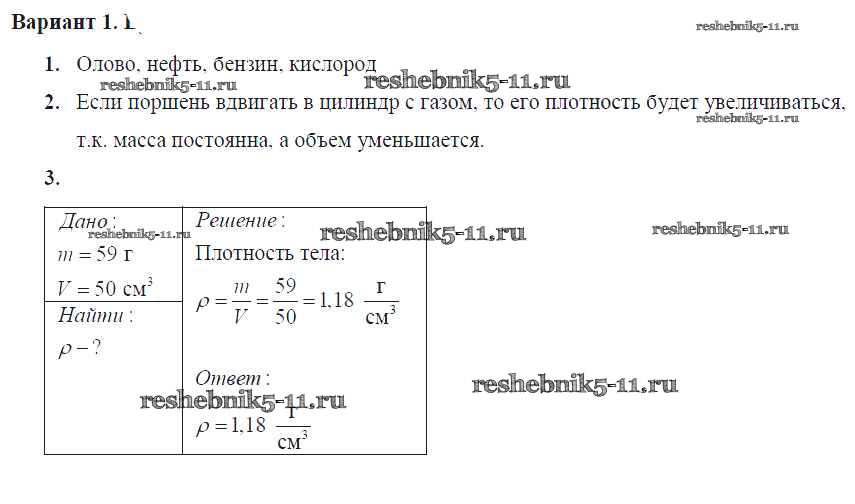 Решебник №2 / самостоятельная работа / ср-№22. плотность вещества / вариант №1