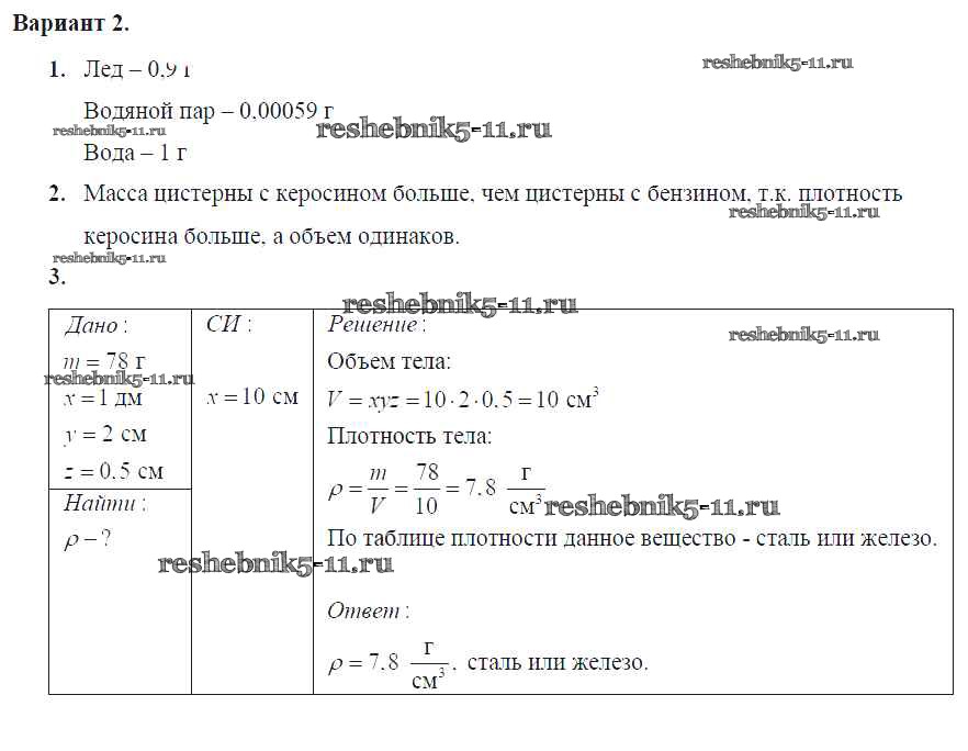 Решебник №2 / самостоятельная работа / ср-№22. плотность вещества / вариант №2