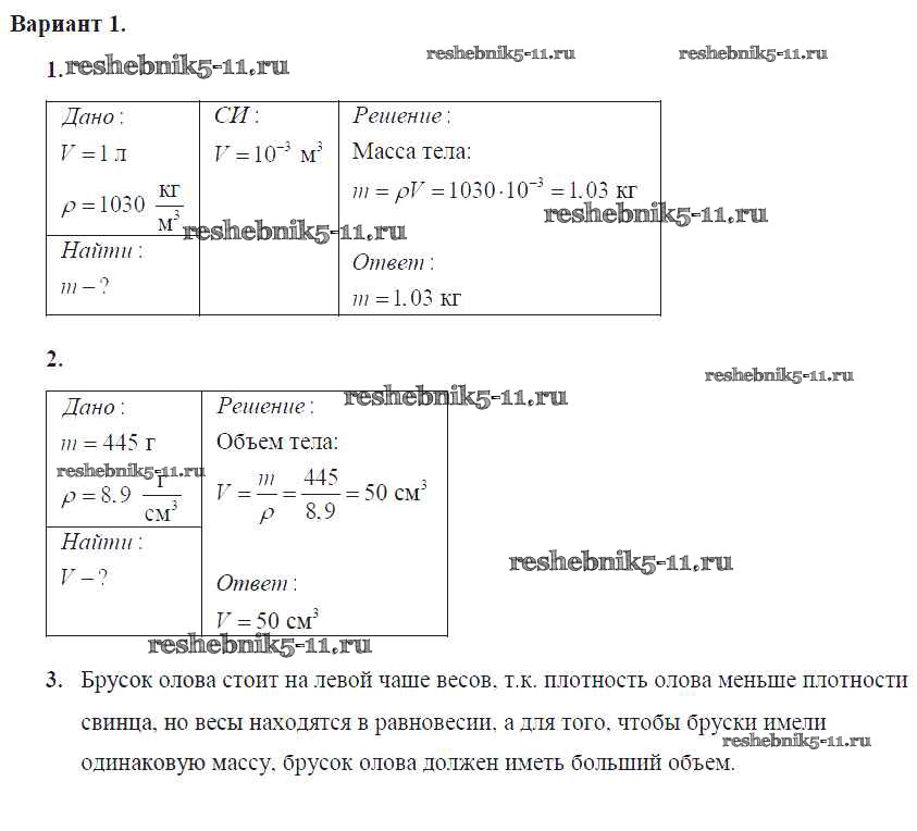 Решебник №2 / самостоятельная работа / ср-№23. расчет массы и объема тела по его плотности / вариант №1