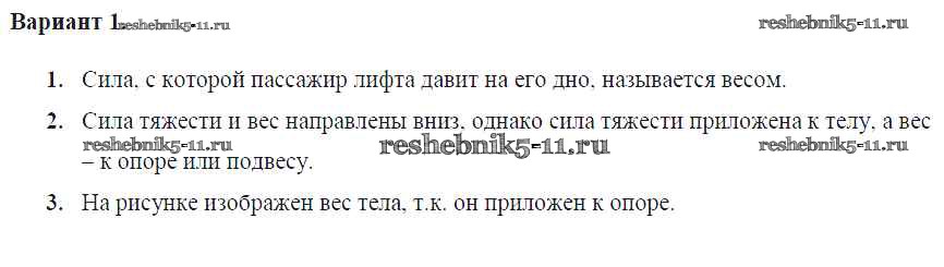 Решебник №2 / самостоятельная работа / ср-№27. вес тела / вариант №1